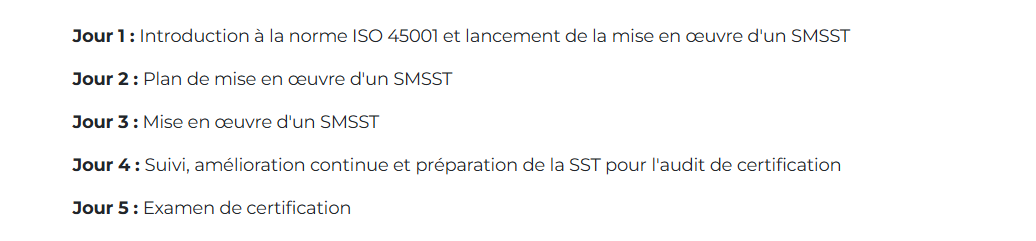 Ces connaissances préalables peuvent être facilement acquises en suivant notre cours de base sur les systèmes de management de la sécurité et santé au travail ISO 45001:2018.