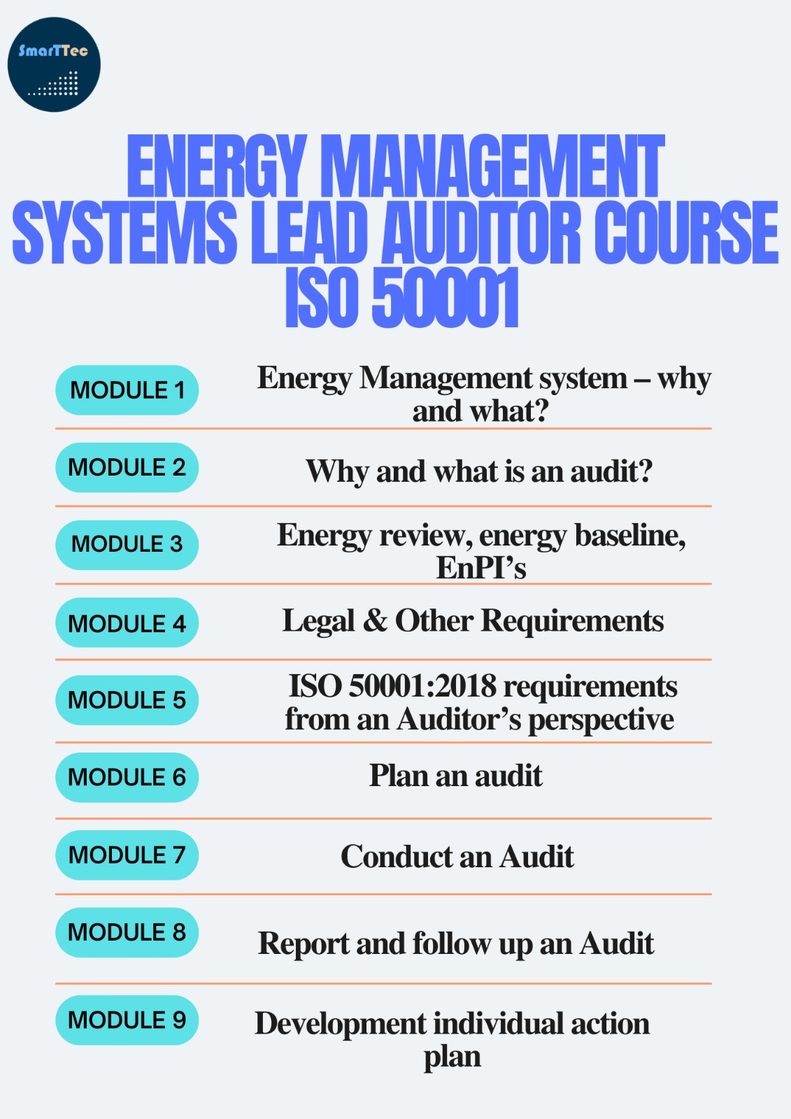 Le cours vise à fournir les connaissances nécessaires pour mener des audits de première et deuxième partie sur les systèmes de management de l'énergie.