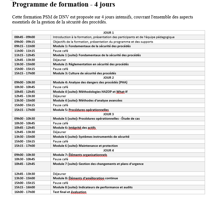 Formation PSM DNV – Process Safety Management