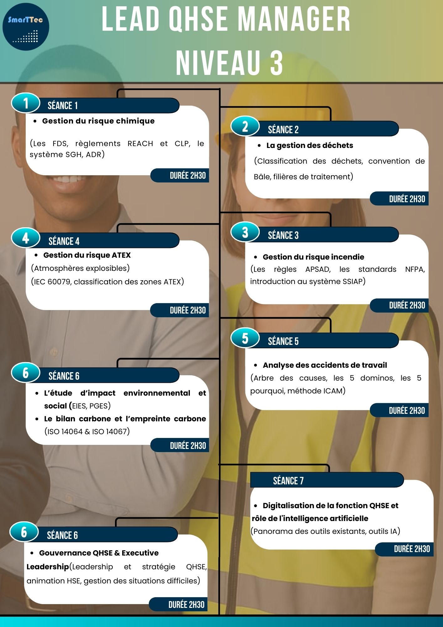 La formation certifiante Lead QHSE Manager – N3 (Expert) est conçue pour les professionnels souhaitant atteindre un niveau d’expertise élevé en management QHSE.