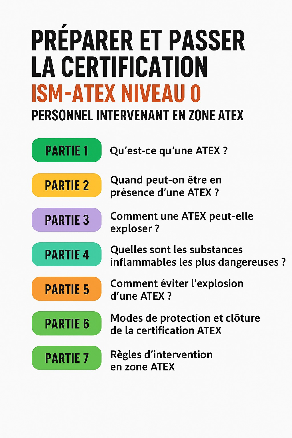 Sensibiliser le personnel aux risques liés aux atmosphères explosives (ATEX) et leur fournir les connaissances de base pour évoluer en sécurité dans des environnements présentant un risque d’explosion.