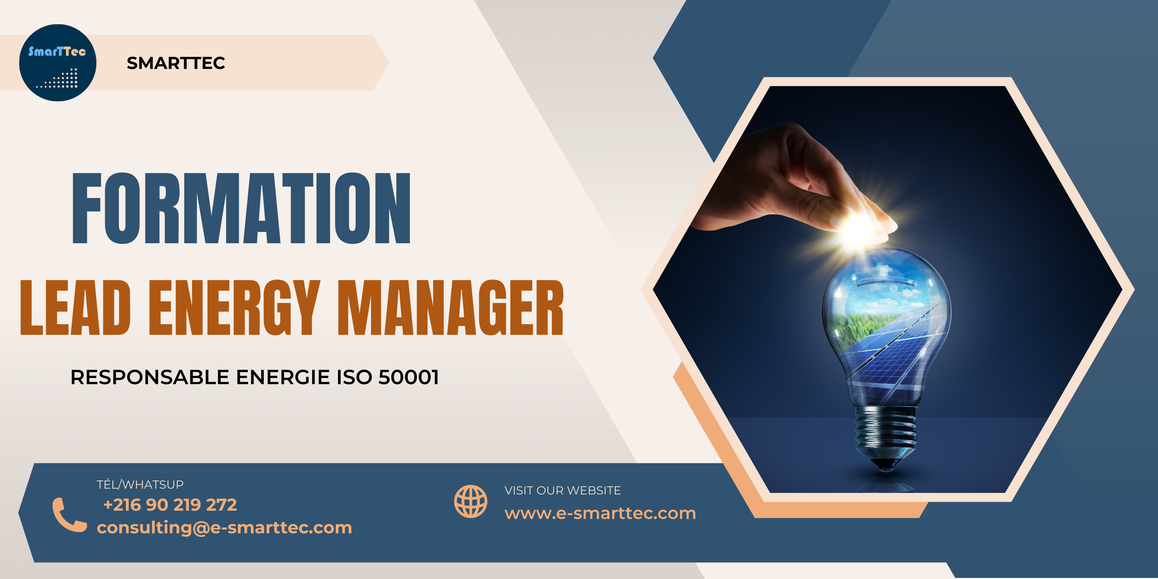 La formation Lead Energy Manager vise à former des professionnels capables de gérer efficacement l'énergie au sein d'une organisation. Les objectifs incluent l'optimisation de la consommation énergétique, la mise en œuvre de solutions durables, la conformité réglementaire, la gestion des coûts énergétiques, la communication et la sensibilisation, ainsi que la familiarisation avec les technologies émergentes. L'objectif global est de créer des leaders capables de promouvoir l'efficacité énergétique et la durabilité au sein de leur entreprise.