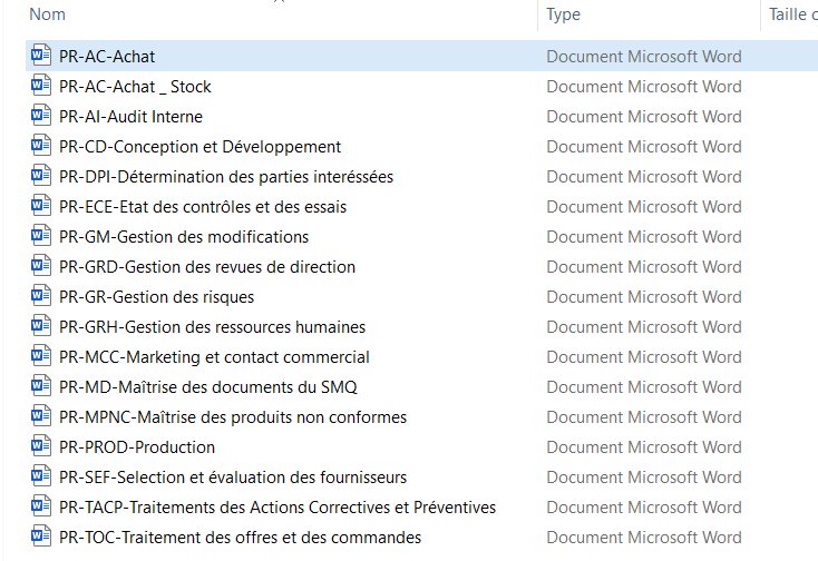 Ce pack contient 17 procédures facilement personnalisables : - Achats - Gestion des stocks - Audit interne - Conception et développement - Détermination des parties intéressées - Etat des contrôles et des essais - Gestion des modifications - Gestion des revues de direction - Gestion des risques - Gestion des ressources humaines - Marketing et contact commercial - Maîtrise des documents - Maîtrise des produits non conformes - Production - Sélection et évaluation des fournisseurs - Traitement des actions correctives et préventives - Traitement des offres et des commandes